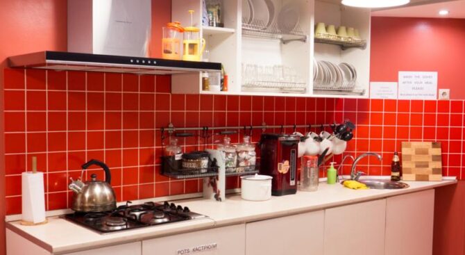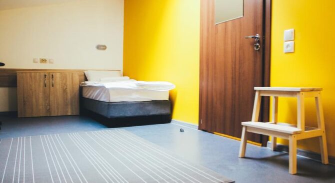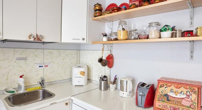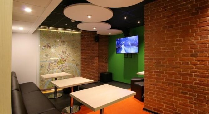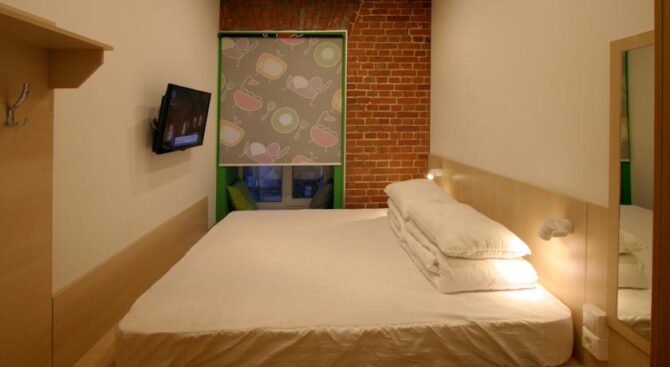 The rooms at this youth hotel have a bright, impressive interior, next to them there is a common bathroom, a lounge (living room) and a kitchen. Here you can independently prepare any dish, especially since the hotel administration has provided for the delivery of products.