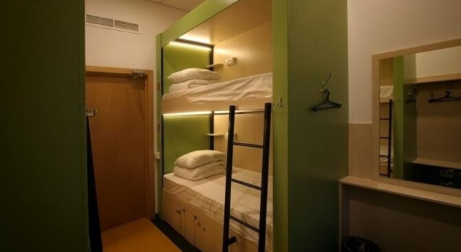 The rooms of the hostel for each guest there is a bed with an individual socket, curtain and lamp. On the territory of the hotel there is a wireless free Internet (Wi-Fi). Everyone can use the shared toilet and bathroom.