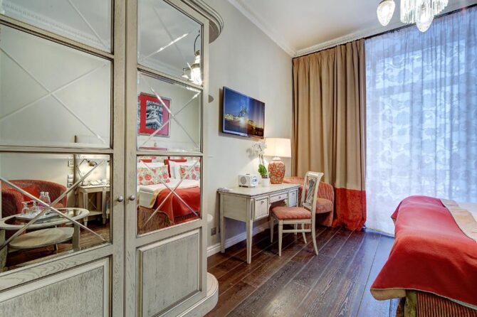 The main thing that distinguishes mini-hotels in St. Petersburg is a convenient location in the heart of the city (for a small hotel with ten rooms to find a room in the center is much easier), a sincere, homely atmosphere and an individual approach to each client – here all guests are known in person. All tourists, regardless of the purpose of arrival in St. Petersburg, can recommend a private hotel Casa Leto (Casa Leto): it is among the ten best city hotels and competes on equal terms with the “big” hotels. There are only five comfortable rooms, decorated with great taste and understanding of the needs of guests. The hotel is a couple of minutes walk from Nevsky Prospekt and St. Isaac’s Square, next to the Admiralteyskaya metro station.