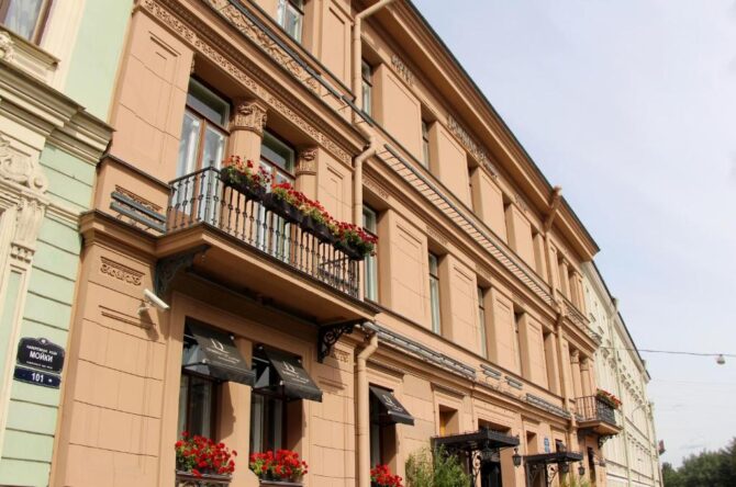 The hotel is located in a picturesque place on the embankment of the Moika River, just a couple of minutes walk from the Palace Square and the Hermitage. The admiralteyskaya or Nevsky Prospekt metro stations can not be reached within five minutes. In addition to the convenience of location, this luxurious hotel boasts an excellent restaurant, free parking in the courtyard of the hotel, as well as exquisite decoration of comfortable rooms.
