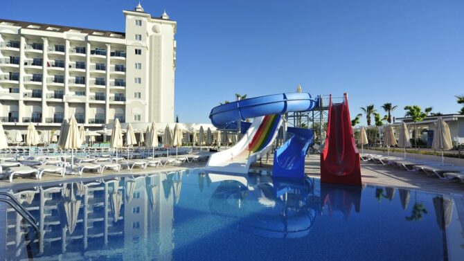 On the territory of the hotel there is a club of interests for different age groups. Employees of mini-clubs learn all the necessary information, and, based on the preferences of guests, organize leisure activities for the whole day. Also, children are offered a large children’s pool with slides in the shape of an octopus. Although it is extremely difficult to drown in it, since there is a small depth, experienced rescuers are regularly on duty near the water, who conduct daily safety briefings. There are also large water slides in a makeshiet water park, but children ride them only under the close supervision of adult family members or a nanny. In the evenings, little tourists visit the dance floors, where they move a lot to their favorite music, participate in shows and play with each other.