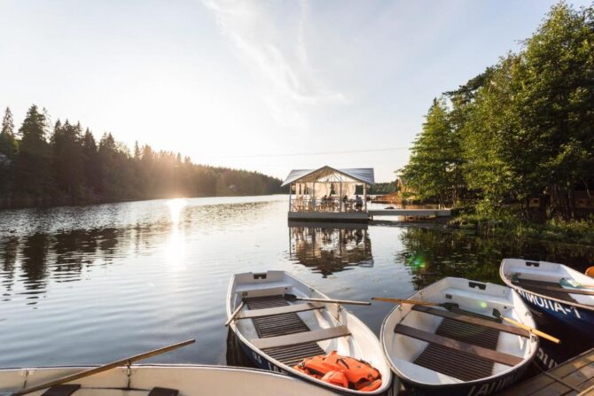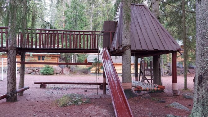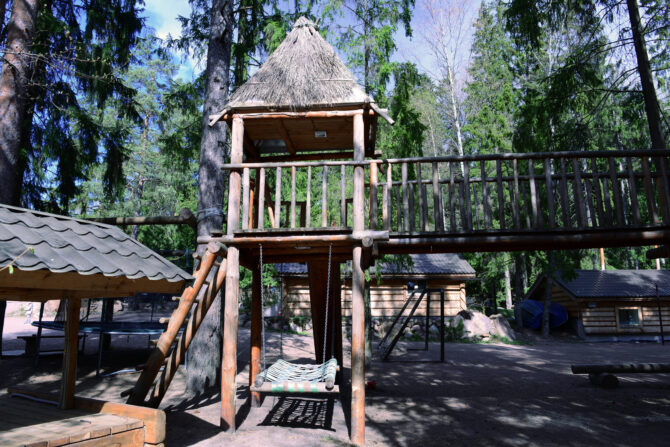 Irina S. writes a review: “Rested with 2 children. In the evening we walked around the territory, tried all the playgrounds. Then we rented a boat and met the sunset on the lake. We had dinner in the restaurant – special thanks for the children’s corner with a bizyboard and stunning views from the window. In the morning an early swim in the pool, then breakfast and again the pool. Then there is the ride to Iloranta with a stop at thunderstone and eating blueberries from the fields. Rested mentally!”