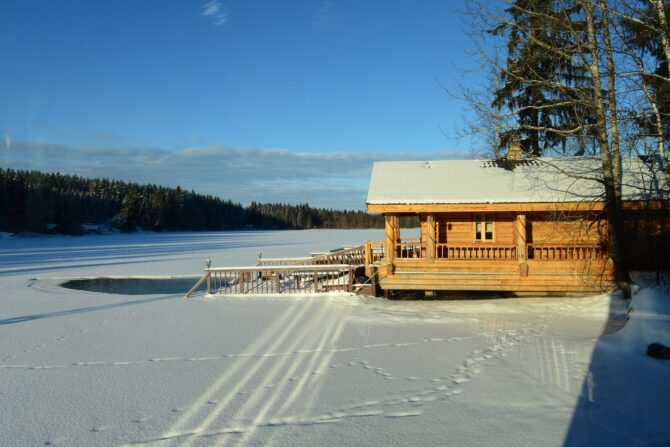 In the snowy and frosty winter, an ice rink is poured on the lake, and a ski track is laid in the forest. Skates and skis can be rented – 200r per hour. The same is the cost of a windmade. Also in winter, you can fish on the lake, if the thickness of the ice allows. Renting a winter fishing rod costs 200r per hour, but experienced fishermen bring belongings and ammunition with them. In the lake “Big Forest” is caught: pike, perch, burring, ruff, bream, roach, redfish, gustera, yaz and rarely eel.