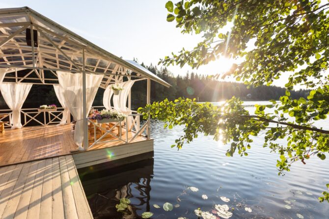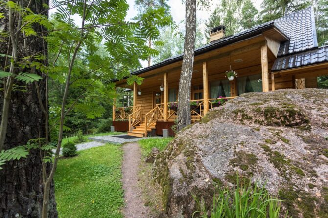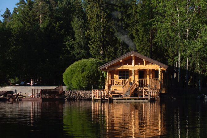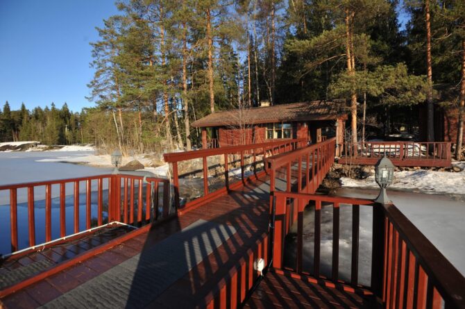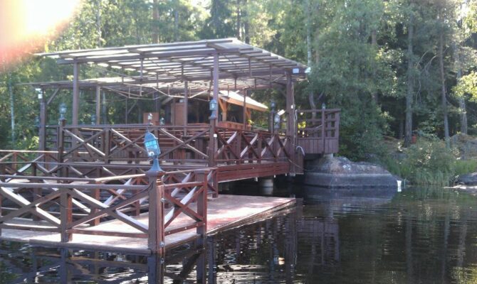 Country Club Hotel “Tapiola” is located on a lake among coniferous forests, 20 km from Vyborg. This camp site offers for rent cozy houses and rooms with a large selection of entertainment and outdoor activities. It offers a swimming pool and spa, restaurant and barbecue facilities, swimming and boating, cycling and hiking. In addition to this, there are excellent baths, a children’s club and playgrounds, equipment rental and a protected area. The place is ideal for celebrations, weekend trips, picnics and fishing. Prices are average, but there are discounts and options on how to save on vacation.