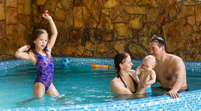 “chic large swimming pool, besides it there is a small one for my one-year-old baby”, “the spa complex is at a height, I liked it very much”, “we often relax in the pool, sometimes we rent a house, the impressions are good, the service is at the level”.