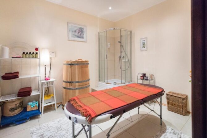 The pool is equipped with a countercurrent – a pump that drives water in a circle. In the pool bowl there are 8 types of hydromassage. Here’s how guests comment on it in the reviews: