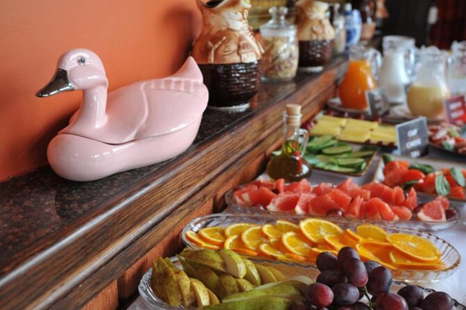 The menu is small, but there is a lot to choose from. Guests in the reviews write about the local cuisine: “good food in the restaurant, I advise you to try the local kvass”, “had a great lunch, pleased with the steak mignon with grilled vegetables”, “salads were juicy”, etc.