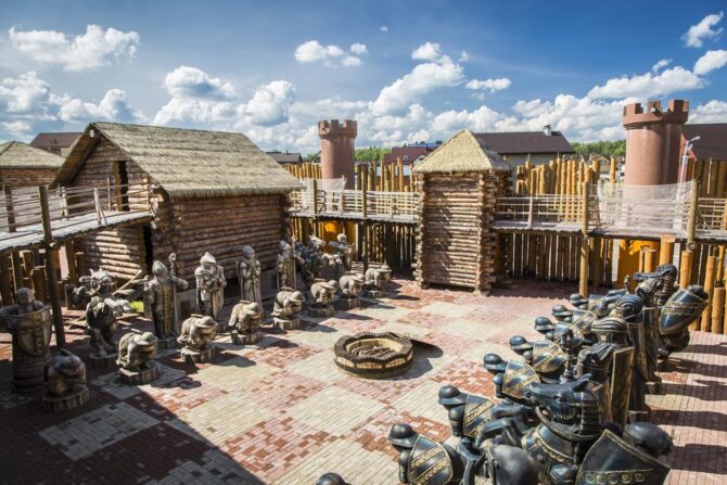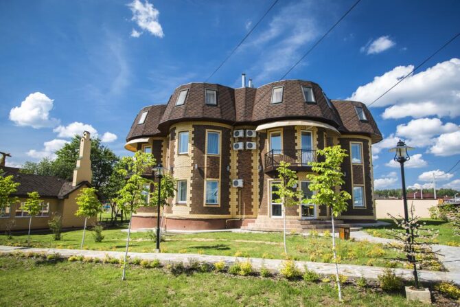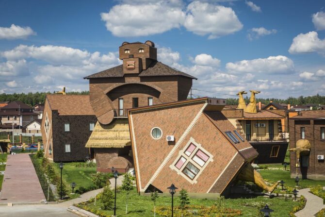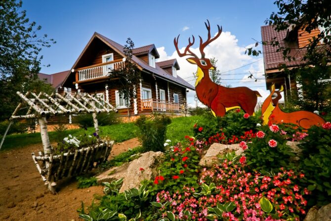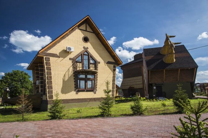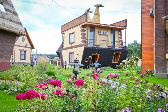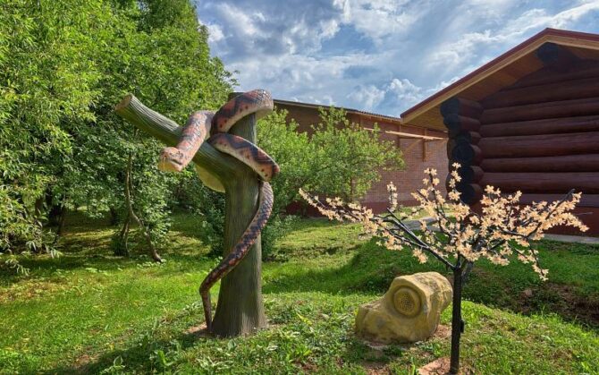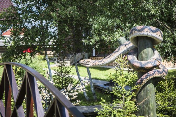 In Country Club Luchy, each guest house is decorated according to an individual project, and surprises guests with its location. They have separate names: “Shapoklyak”, “Bastinda”, “Yabeda-koryabeda”, “Gorgona”, “Gingema”, “Kikimora”, “Snow Queen”, “Den”, “Nest”, “Anthill”, “Cat’s House”, “Flower”.