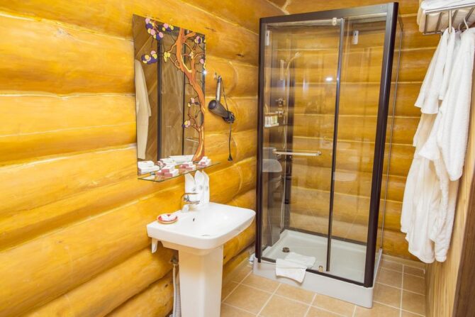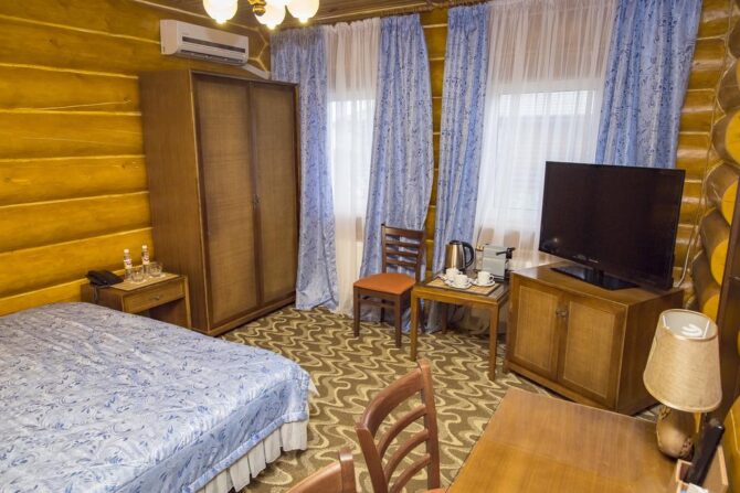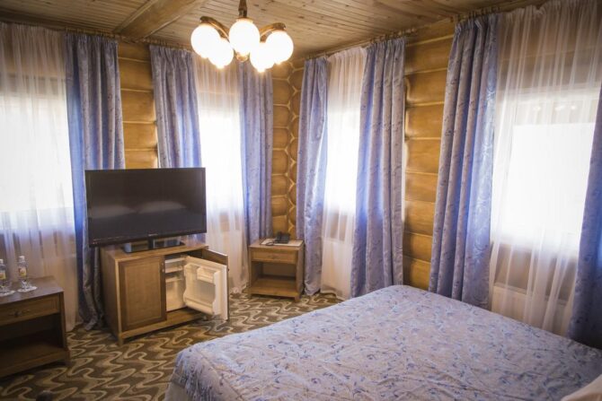 All cottages are equipped with wireless Internet access, LED-TV, air conditioning, refrigerator, coffee maker, electric kettle. Some apartments have a double bed of round shape, which is very popular with guests. Wooden buildings are built of environmentally friendly material.