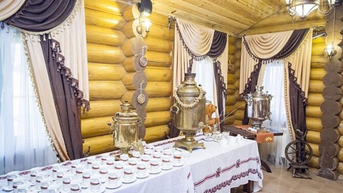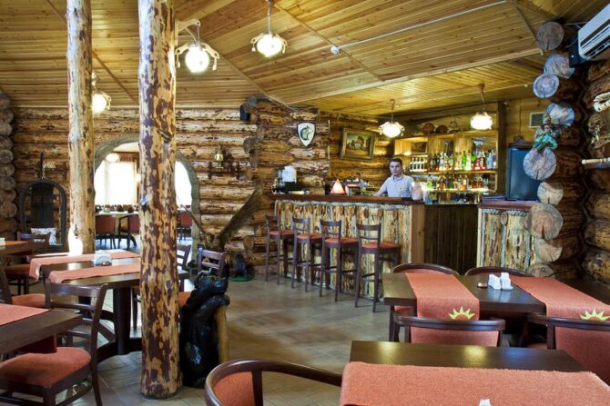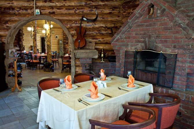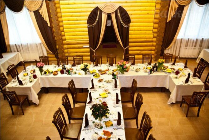 - The most cozy place in the Country Club Luchy is the restaurant “Teapot”. Here you can comfortably sit on a soft sofa and enjoy the beauty and originality of the interior. Small weddings are often held here, to which only the closest people are invited.
