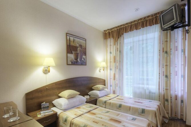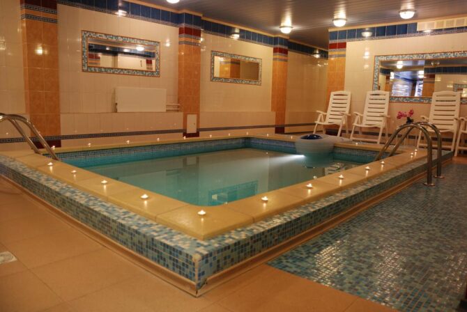 And now information for those who are accustomed to devote a lot of time to their health. On the territory of the hotel there is an institution, which today is called the fashionable expression “spa”. The building has massage rooms, baths in barrels, steam rooms, a bath, a swimming pool with hydromassage. Cosmetologists do scrubbing, peeling, masks, laser procedures, wrapping and much more.