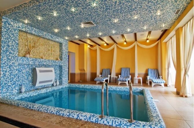 On the basis of the sanatorium and health center “Laguna” there is a covered area – a SPA with a swimming pool filled with sea heated water. Visiting the pools from June to the end of September does not require payment.