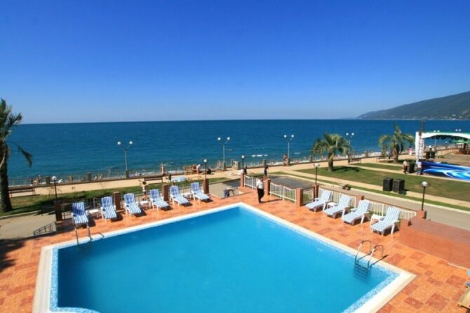 The Black Sea water area of Abkhazia is distinguished by lush greenery of palm caps, saving from the scorching subtropical heat. The refreshing sea breeze wraps in a thin transparent veil. The cleanest air of the Abkhaz mountains fills with magical fluids of optimism.