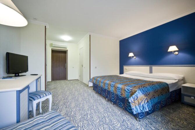 - “PC Standard” – consists of a one-room space with two beds, a balcony. Refrigerator, safe and TV screen are present. In the sanitary rooms there is a shower, towels included, hygienic accessories.