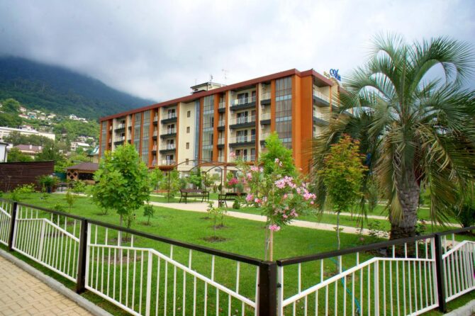 The complex is located in the central part of the song-sung city of Gagra and less than 100 km away. from Sukhum. The beauty of mountain and sea landscapes fascinates the eye and pleases the soul. Clear sea water beckons with its deep blue.