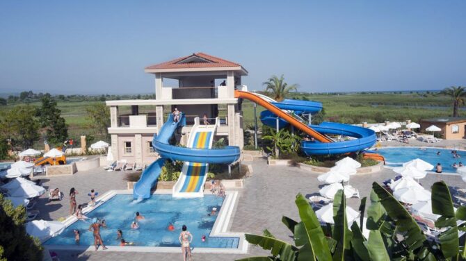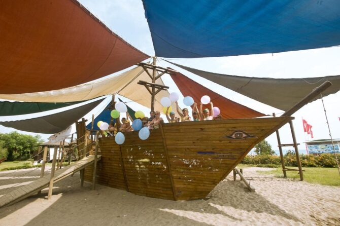 The complex is deservedly proud of the quality of services provided for younger guests. Children have a real expanse here: beautiful inventive animation is available throughout the day on the playgrounds. Swings, complexes, attractions, a mini-club and a children’s pool with water descents, bright, immersed in greenery will bring unforgettable impressions to children of all ages – from kids to teenagers. It should be noted that all sites are under awnings, trees and other protection from sunlight.