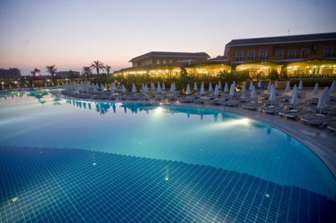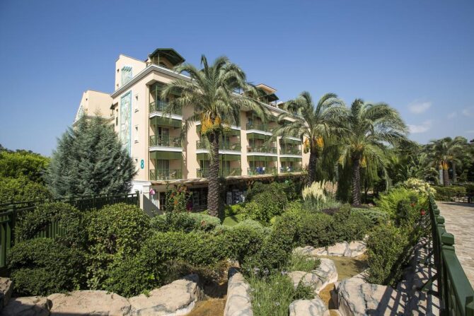 Hotel Crystal Paraiso Verde Resort & Spa is comfortably located in the small resort village of Bogazkent on the Mediterranean coast. This one of the young resort centers of Turkey is located 8 km east of the famous Belek, fifty kilometers from the central regions of Antalya, 11 km from the city of Serik and four hundred meters from the sea beach belonging to the hotel.