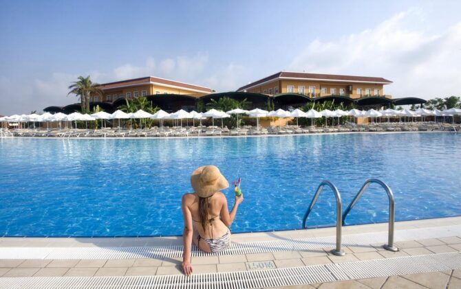 Beaches in this region occupy a six-kilometer strip with a sand and pebble coating. The descent into the sea is gentle, with small pebbles at the bottom. The water in the sea for most of the year retains a comfortable temperature for swimming and, although it has a slightly turbid consistency, still remains clean. No wonder the beach is included in the zone of the National Reserve. The resort of Crystal Paraiso Verde Resort and Spa belongs to half a kilometer of the sea shore, which has sunbeds and sun awnings, umbrellas, showers. There is a café on the coast. Fun pastime can be provided on water trampolines, adult and children’s, as well as parachute flights, riding a scooter or “banana”.