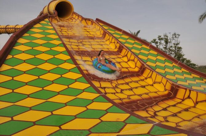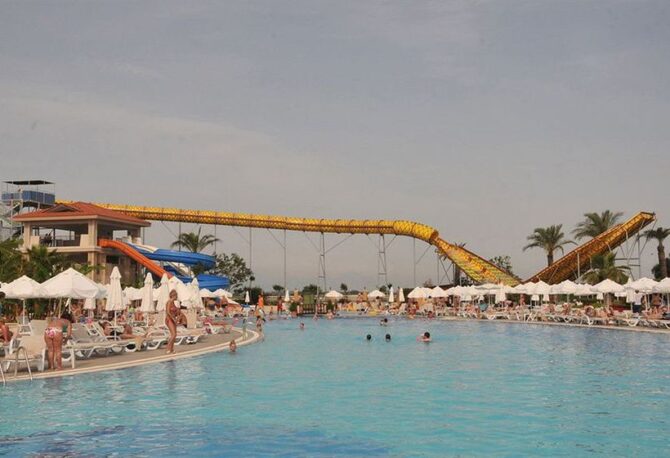 Mary, Kharkov: “The territory is quite decent. Everything is covered with vegetation and it’s just great! Everywhere everything is cleaned and shines with purity. A huge pool for everyone, and there is still a small one – only for adults. A huge number of playgrounds for children and there is also a complex of attractions, quite decent. Not Disneyland, of course, but still, very good. Yes, there is a bowling alley and you can play billiards. The pools have water slopes that are open on schedule.”