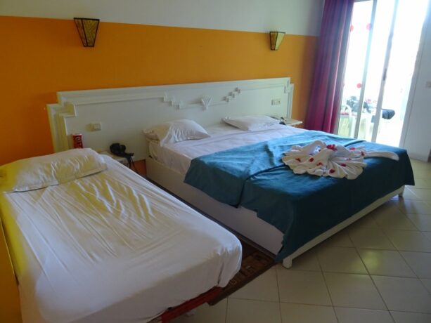 Ksenia, 28 years old: “The biggest plus is a beautiful large area where you can walk to spend less time in a standard old room with non-working plumbing. The food is not as varied as in Turkey, but quite tasty, especially pizza and grilled meat. Of the drinks I liked the beer, I do not advise wine, it is also better not to even try yuppy. There is a mini-club, but children do not like to go there, but they are not bored from this, since the animators entertain everywhere, even on the beach. There are problems with cleanliness.”