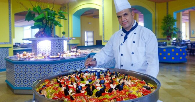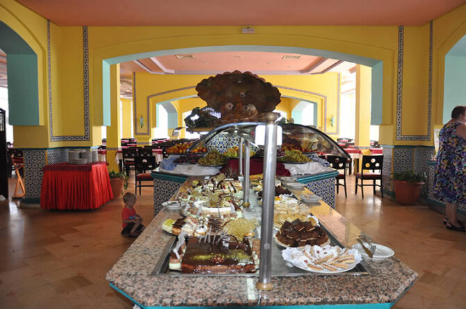 The main restaurant Caribbean World is open on an all-inclusive system from 10:00 to 23:00. It serves a variety of breakfasts, rich lunches and delicious dinners. Chefs prepare Tunisian traditional cuisine, so be prepared for vegetable and bean side dishes.