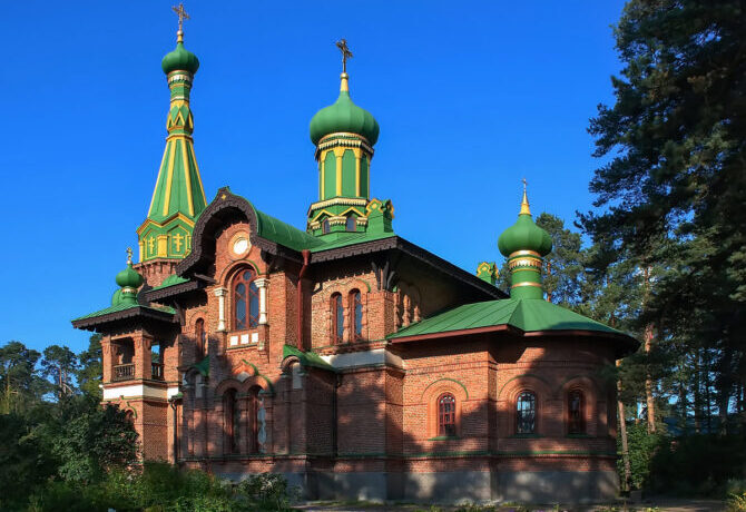 One of the most visited is the Resurrection Skete. It is made of red brick. The two-storey temple building was erected in 1906.