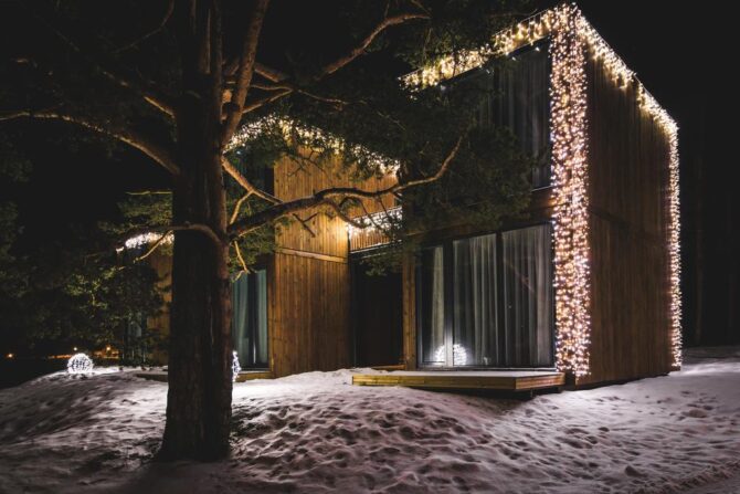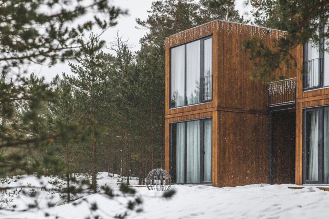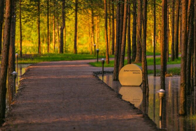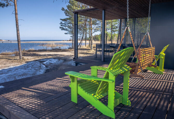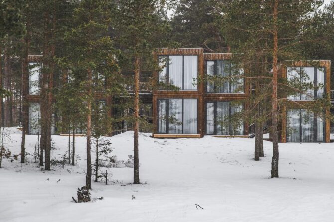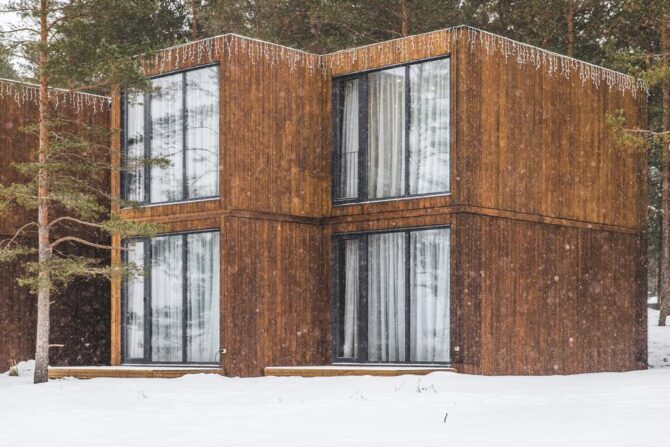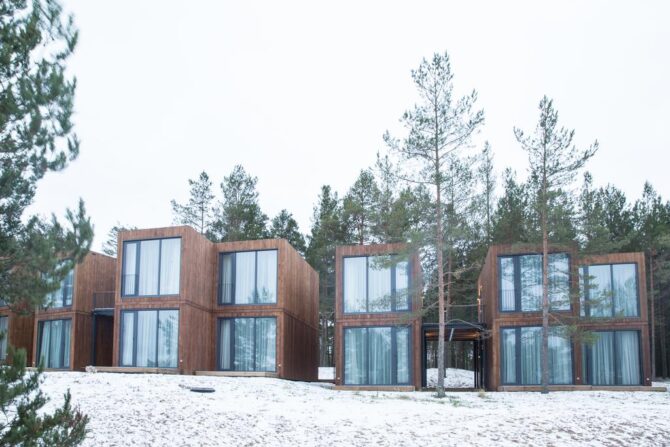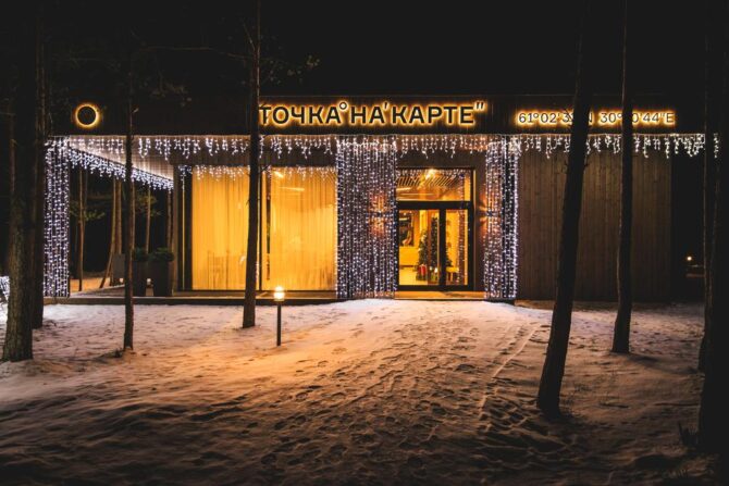 One of the leaders of tourist recreation in the Leningrad region and Karelia is the hotel chain “Point on the map”. Hotel in Priozersk is located on the picturesque coast of the Zuoksa River. Lake Ladoga can be reached on foot. Two-storey buildings with panoramic windows are built in the middle of a coniferous forest. Eco-materials are used in the project. Modern architectural style harmoniously complements the surrounding landscape. The place is popular for weekends, family holidays in nature.
