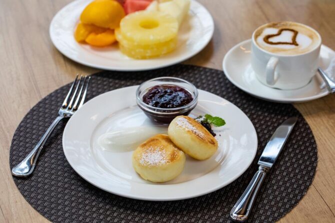 The chef developed a special children’s menu, where he also showed his author’s handwriting. Kids are offered soup with chicken meatballs and Orzo pasta, branded fish cutlets with mashed potatoes, unchanged naguets, sausages with macaroni and cheese. You can always order sweet cheesecakes with sour cream.