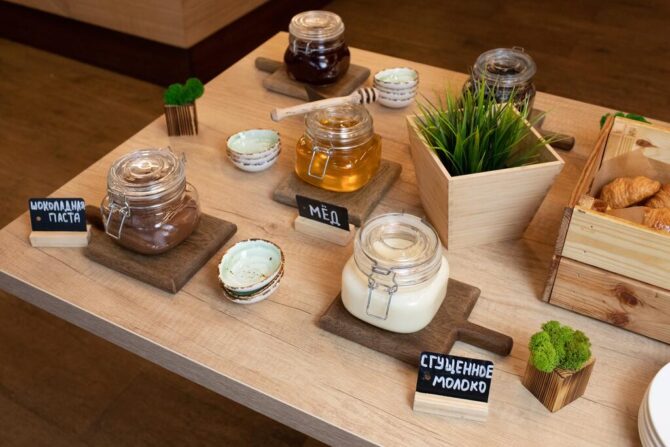 Catering is organized by a gastronomic restaurant. The menu is based on dishes prepared from traditional northern products. For their preparation, Baltic herring, mushroom, salmon, lingonberries, spruce oil and other products are used, which nature generously endowed these lands with. The chef successfully combined tradition with European gastronomic delights. Along with the soup of forest mushrooms, here you can order salmon tartare, pheasant cutlets with soaked lingonberries, Karelian soup with cream.