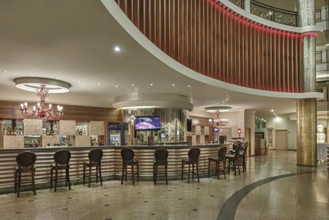 The hotel has 495 rooms, which are distinguished by staffing and the degree of comfort. Even in the most inexpensive apartments there is a mini-refrigerator, a spacious bathroom, a plasma TV, an electronic safe for storing valuables, air conditioning that allows you to maintain comfortable conditions around the clock.
