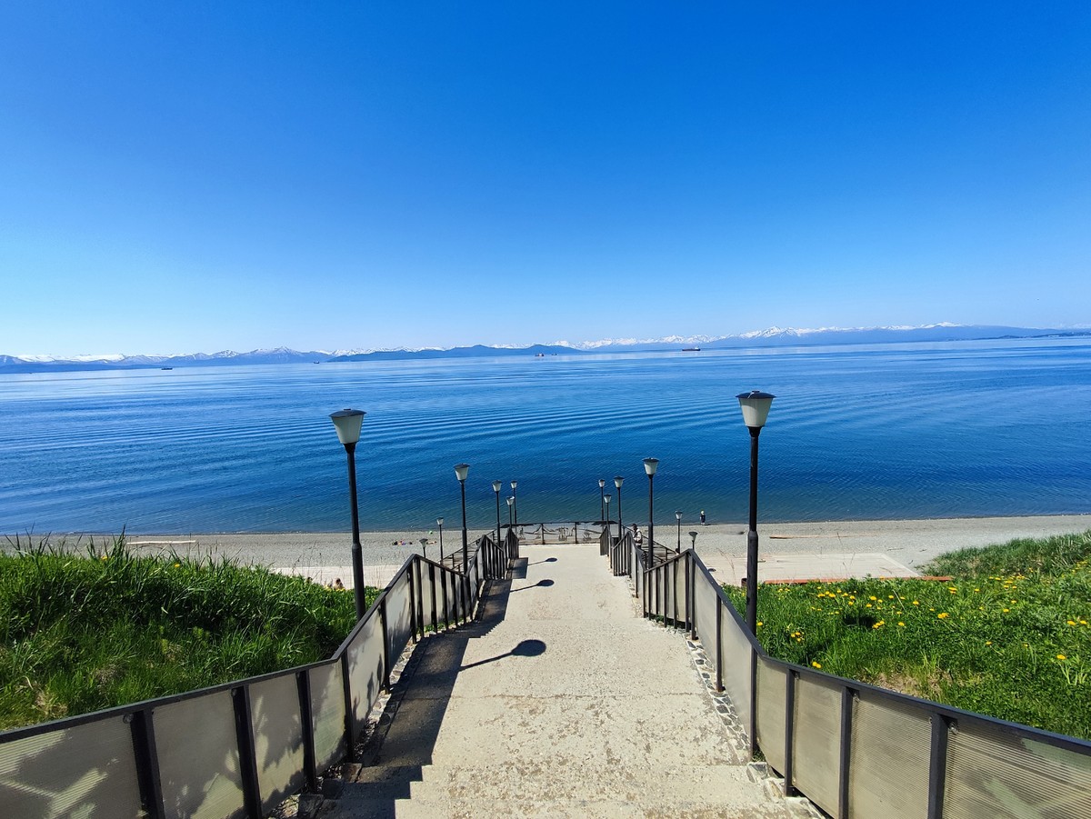 - Несмотря на громкое звание «пляж», купаться в океане не рекомендуем. В самые жаркие дни вода прогревается до +16 градусов, а в среднем летом составляет +7-8 градусов.