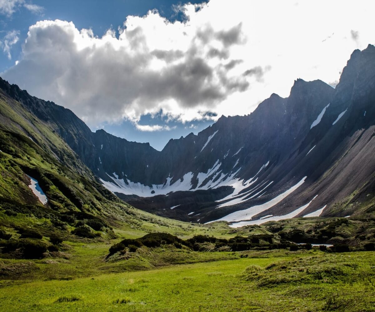 Камчатка — многоликое место. Где-то она напоминает безжизненный Марс, а где-то — живописные Альпы. Именно в такое, зелёное и скалистое, место мы отправимся. Это гора Вачкажец, где вы насладитесь альпийскими пейзажами с водопадами. Затем побываем на Мишенной сопке, с которой открываются виды на вулканы. А в конце вы отдохнёте в горячих источниках!