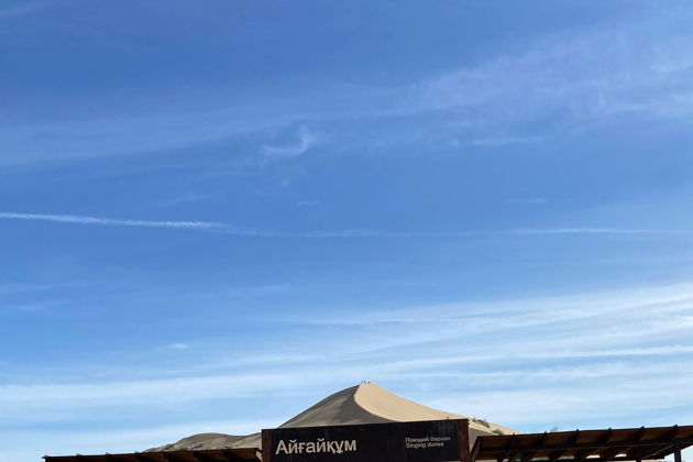 Поющий бархан — одно из самых удивительных чудес природы Казахстана, расположенное в Национальном парке «Алтын-Эмель». Это огромная песчаная дюна высотой около 150 метров и длиной более 3 километров. Свое название бархан получил благодаря необычному явлению: в сухую и ветреную погоду его пески начинают «петь», издавая низкий гул, напоминающий звучание органа или реактивного самолёта. Это завораживающий звук, который остаётся в памяти навсегда. Бархан уникален тем, что, несмотря на постоянные ветра и песчаные бури, он не расползается по пустыне, а веками сохраняет свою форму. С вершины открывается великолепная панорама на горы Заилийского Алатау, Джунгарский Алатау и бескрайнюю степь. Поющий бархан является символом Алтын-Эмеля и входит в список самых посещаемых достопримечательностей региона. Побывать здесь — значит прикоснуться к тайне природы, ощутить магию тишины пустыни и услышать её загадочную песню.