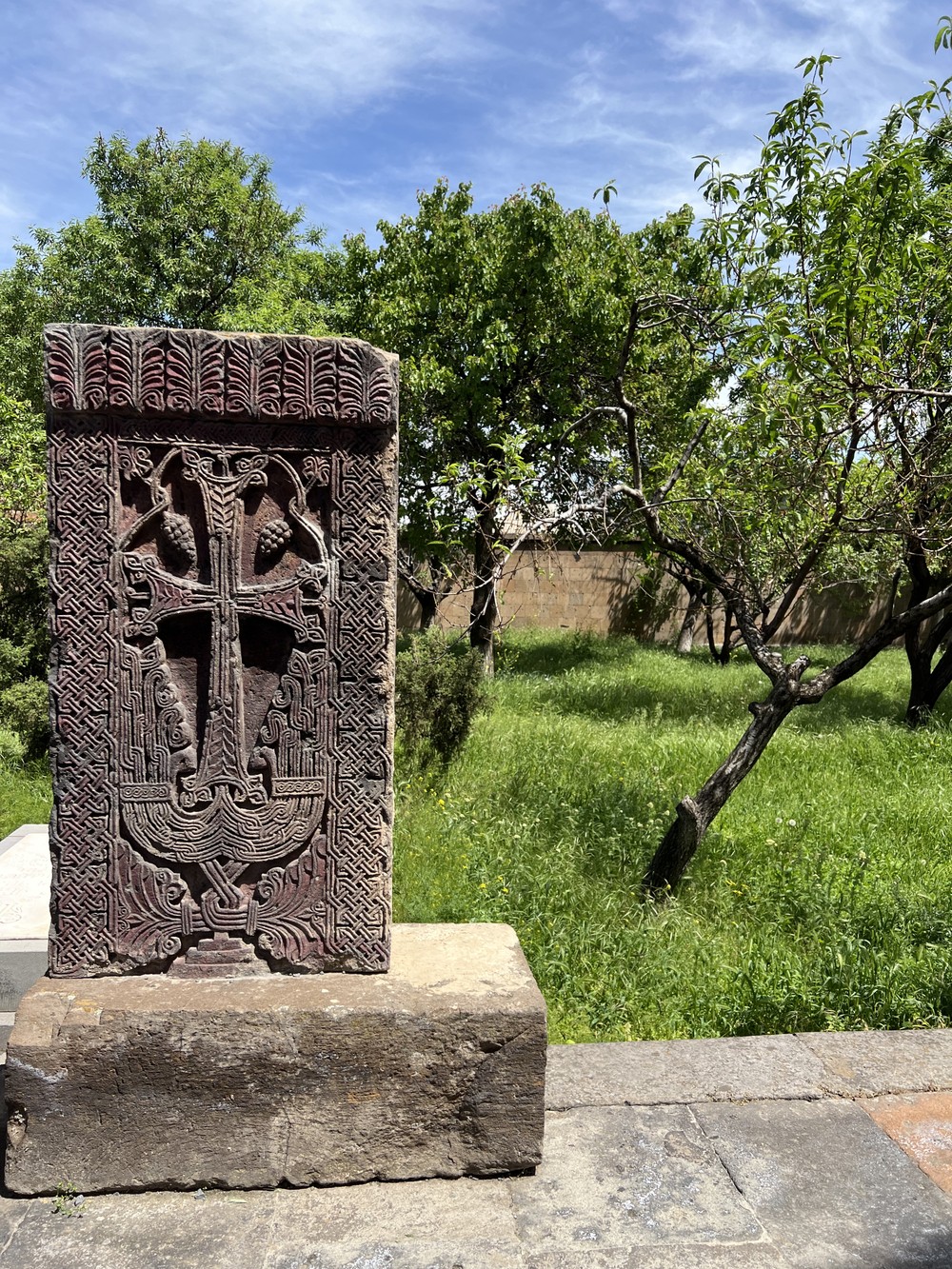 Первая остановка — Кафедральный собор Святого Эчмиадзина. Первый христианский храм в мире, основанный в 303 году. Мы прогуляемся по территории, рассмотрим резиденцию Католикоса всех армян и посетим сам собор, где хранятся святыни — в том числе легендарное Копьё Судьбы.