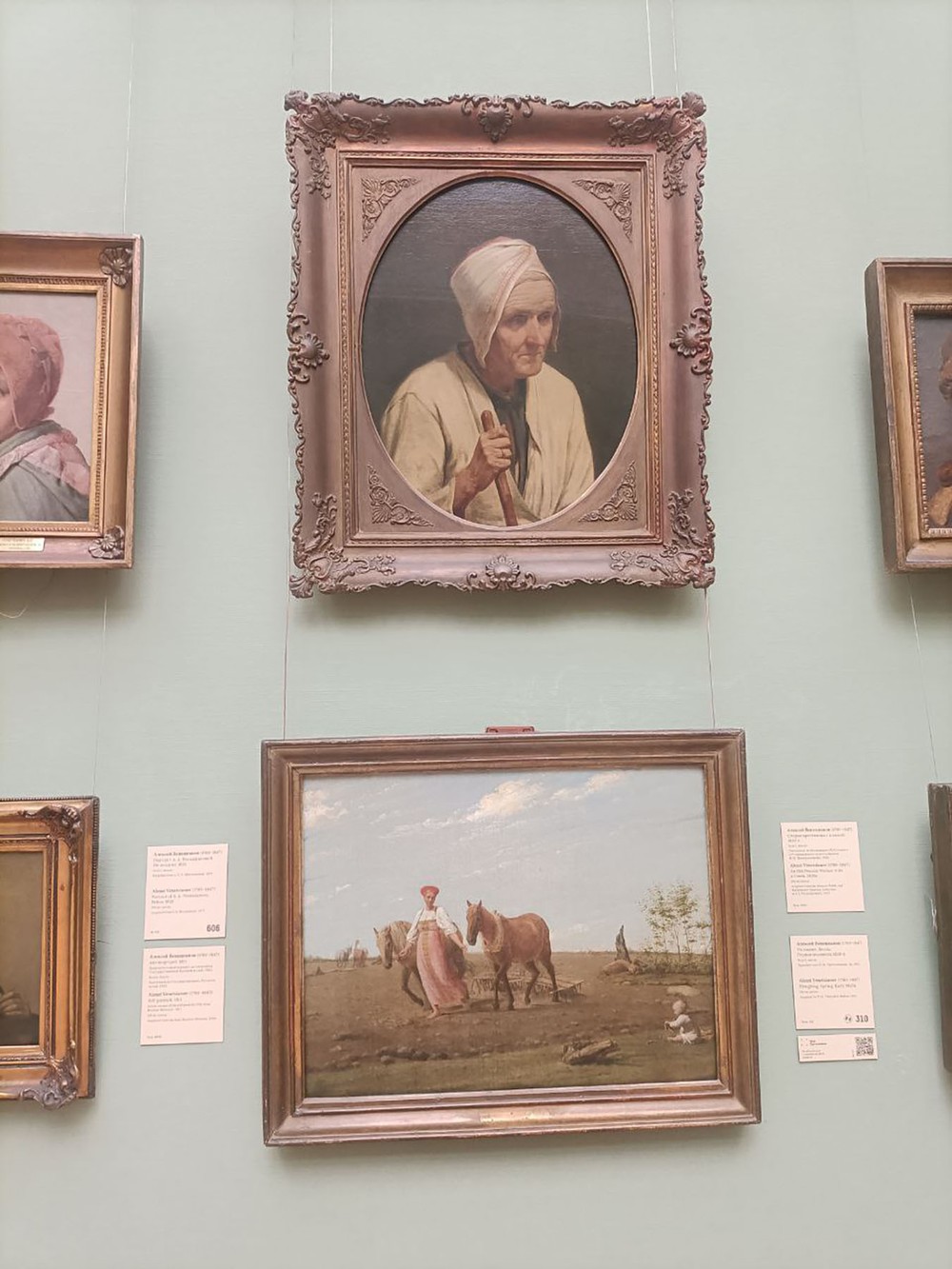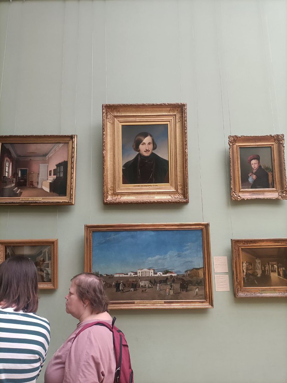 На вашем пути — «Девочка с персиками» Серова, «Боярыня Морозова» Сурикова, «Богатыри» Васнецова, «Радуга» Айвазовского, «Утро в сосновом лесу» Шишкина и Савицкого, «Всадница» Брюллова и другие шедевры.