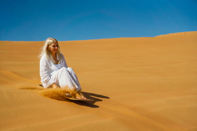 Ваш день начнётся с приключения в пустыне: катание на сэндборде и захватывающий дюн-башинг (езда по барханам). По пути вы познакомитесь с жизнью пустыни и увидите необычные скальные образования — окаменелости и легендарные «верблюжьи скалы».