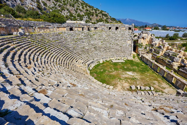 • Древний амфитеатр в Демре. На данный момент в Турции ровно 206 античных театров (известных), построенных во времена Римской империи. Здесь Амфитеатр Демре считается четвертым по величине из всех этих театров. Он был построен во 2 веке и вмещал ровно 10000 человек!