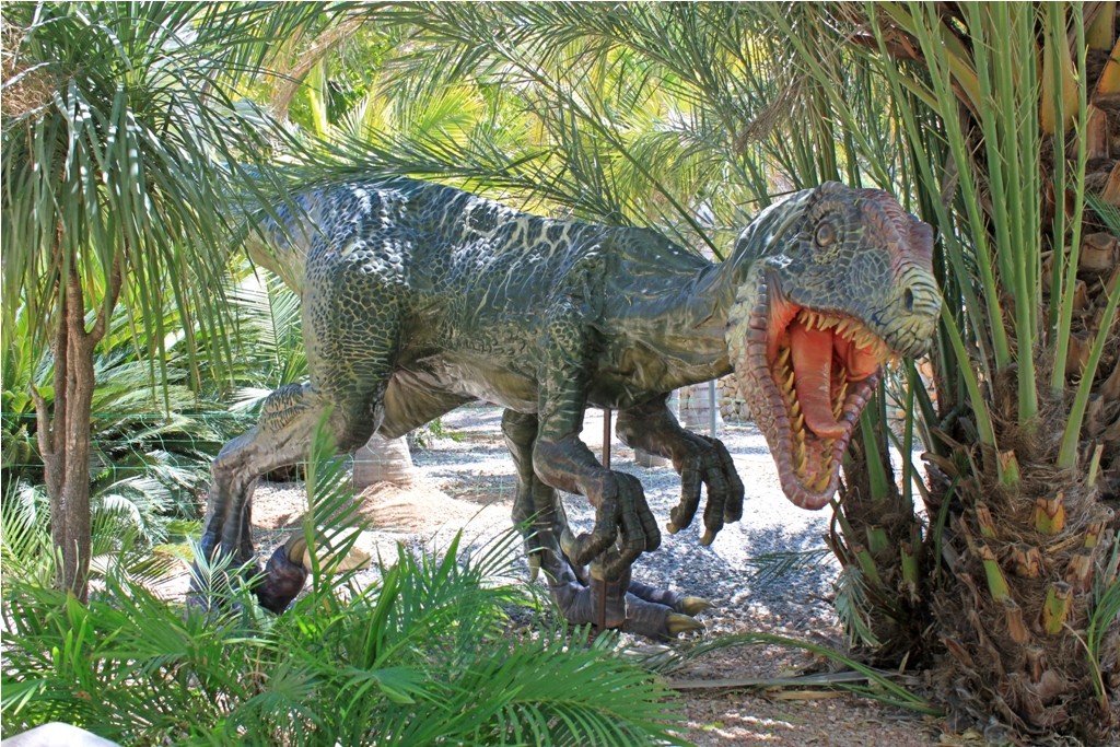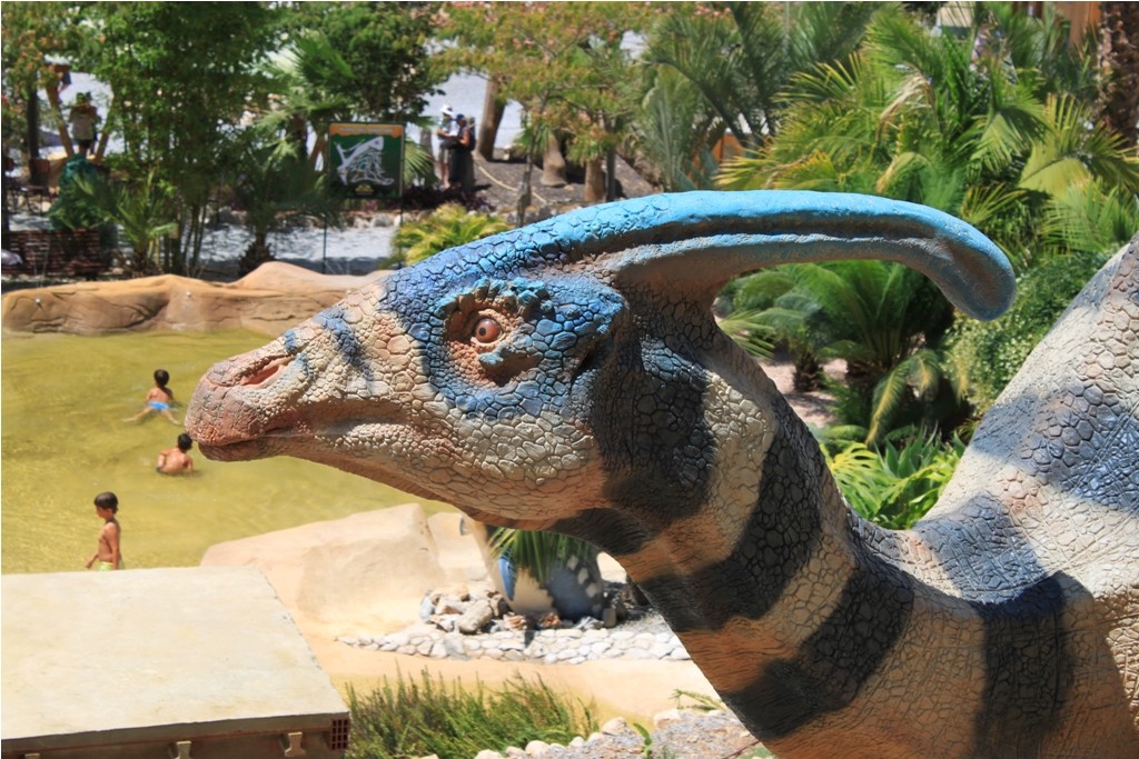 - Последний пункт программы — на ваш выбор: водопады или парк движущихся динозавров. При желании можно даже разделиться: эти места расположены рядом. Водопады, конечно, довольно скромные (особенно ближе к осени), но зато там можно купаться. Кроме того, это очень живописное место, где можно с удовольствием прогуляться вдоль речки (маршрут около 1 км, с подъемом по лестнице в начале). Парк динозавров существует с 2014 года и занял место прежнего парка кактусов. При этом десятки разновидностей диковинных кактусов остались, а динозавры (воссозданные в натуральную величину) в них вписались идеально. Они немного двигаются (шеей, лапами, хвостом) и рычат, что иногда пугает самых маленьких детей. Зато остальным тут — раздолье: и бассейн-лягушатник, и коротенькое 3D-кино про малыша-динозаврика, и побродить среди зарослей кактусов и леденящего душу грозного рычания.