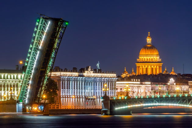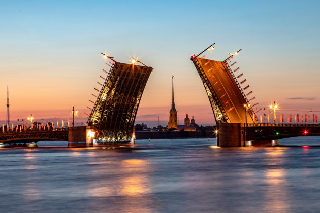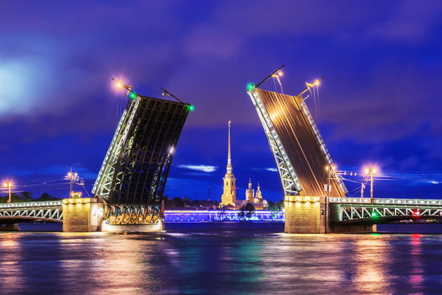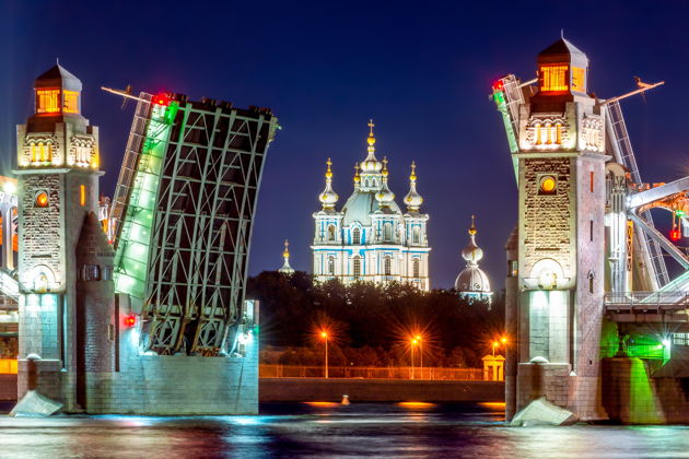 • Дворцовый мост • Троицкий мост • Крейсер Аврора • Большеохтинский мост • Литейный мост • Петропавловская крепость • Стрелка Васильевского острова