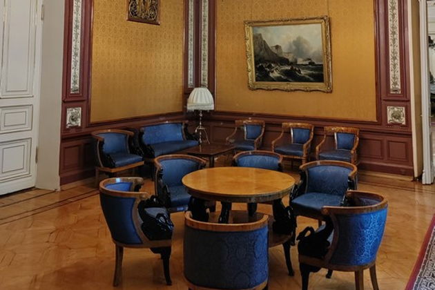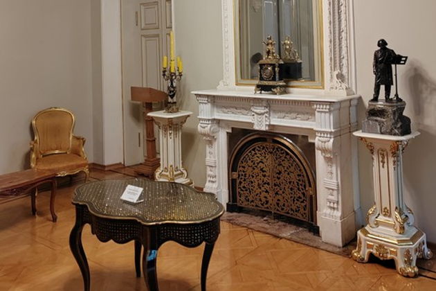 Вы увидите натуральный мрамор, богатую лепнину потолков, искусные вентиляционные решётки, натуральные двери и росписи потолков, люстры и антикварную мебель, камины и зеркала, необычную керамическую плитку и изумительный наборный паркет. Также вас ждёт меблировка парадных залов, анфилада комнат, бывший Зимний сад, в котором теперь расположен ресторан с остеклённым эркером и световым фонарём на потолке. Вы увидите громадное стекло, которое везли в Москву в специально оборудованном вагоне из Италии и устанавливали во время строительства дома, а также работу архитекторов братьев Весниных при переустройстве усадебного дома в 30-е годы ХХ века, которая проявилась в виде пристройки в стиле авангарда с элементами конструктивизма к классическому особняку.
