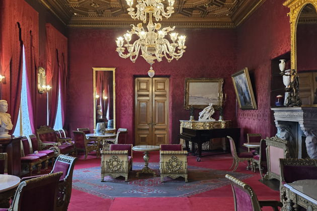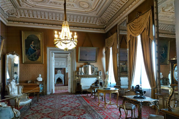 • Малиновая и Золотая гостиные • Мавританский будуар • Парадная лестница • Дубовый и Белый залы • Кабинет Великого князя Владимира Александровича • Библиотека-Ротонда • Приемная • Бильярдная
