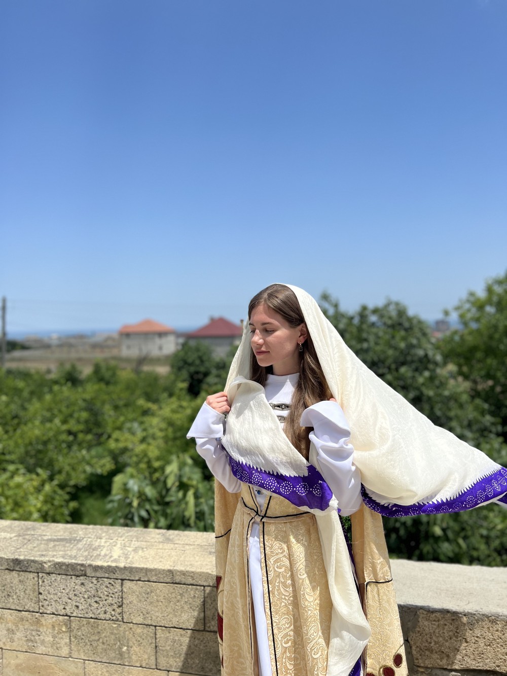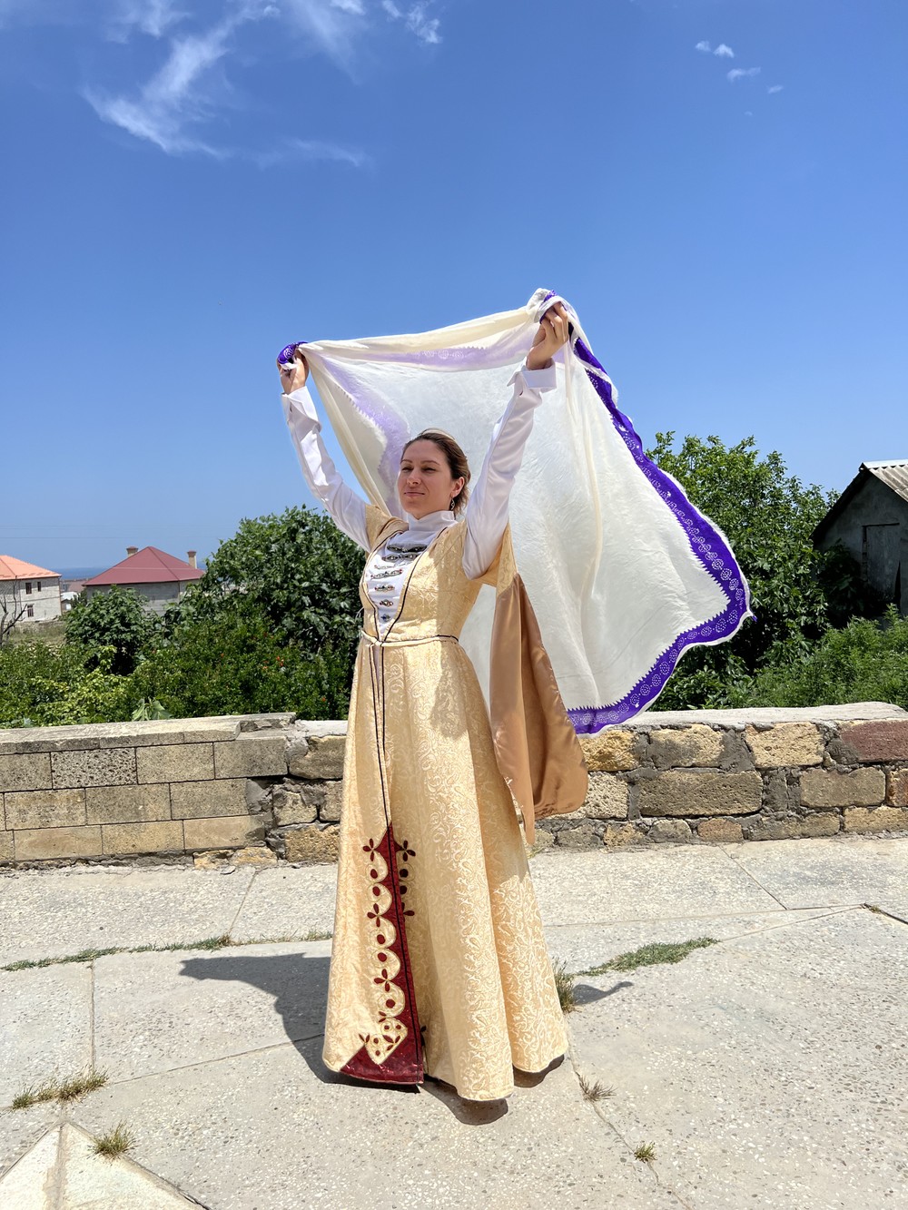 Обед в этнодоме. Сидя на удобных подушках за столом высотой 30 см, попробуете блюда Южного Дагестана — долму, плов, чуду и другие. А ещё примерите национальную одежду горянки и джигита.