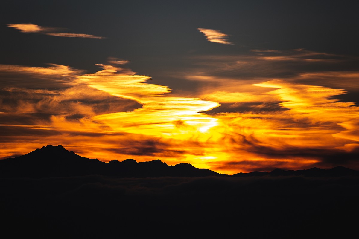 - Ваш самый красивый в жизни закат, отражающийся в кудрявых облаках, с высоты 2600 метров;