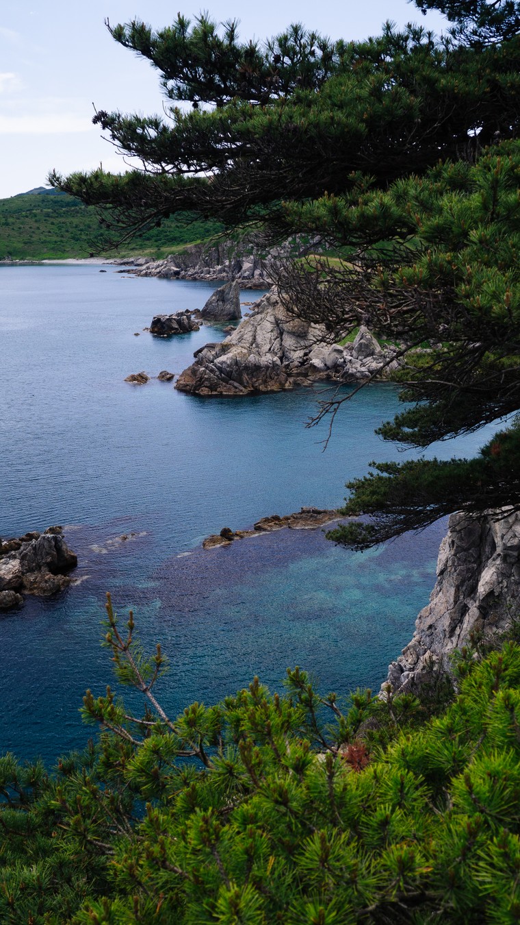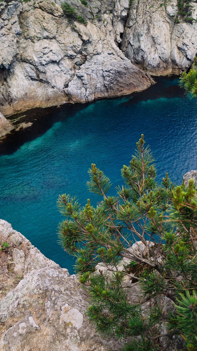 Бухта Теляковского — живописный уголок дикой природы, где море встречается с суровым великолепием скал и краснокнижными соснами.