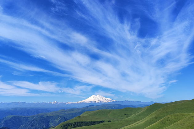 В самом начале заедем на плато Шаджатмаз, откуда в хорошую погоду открывается шикарный вид на Эльбрус. Высота плато – 2127м н.у.м.
