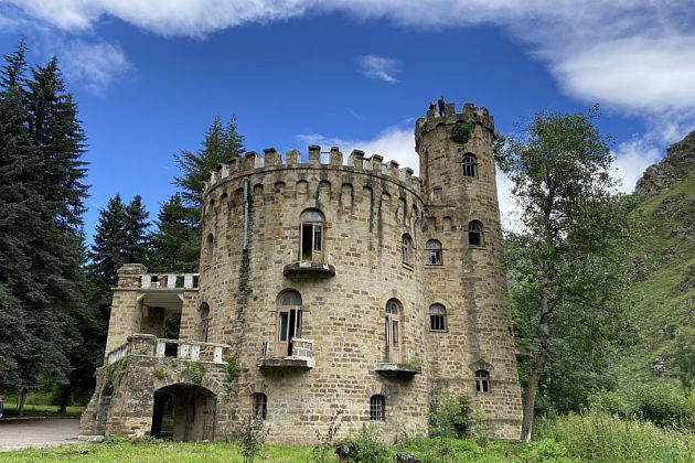 После этого, мы отправимся к заброшенному замку. Зайдем внутрь, посмотрим интерьер и поднимемся по винтовой лестнице до самой крыши.