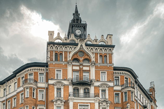 Это — пожалуй, самый-самый из всех доходных домов Москвы, а может быть и Росcии. Не зря его башенка рифмуется с Кремлёвской, а Ле Корбюзье разработавший план сноса всего центра Москвы, оставил этот дом, как нерушимый алмаз, без которого Москва уже не была бы Москвой. Это дом-мечта. В нём хотели жить многие, но удавалось только избранным. Здесь бывали Булгаков, Ленин и Крупская. Здесь жил и архитектор этого дома… Ах да! Мы пойдём в его квартиру.