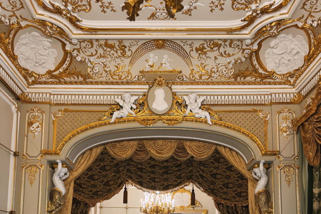 Мы осмотрим парадную с мраморной лестницей, попадем в оранжерею Зимнего сада, где выращивались тропические растения. В Белом зале полюбуемся на скульптуры и позолоченную лепнину, а в кальянной комнате — необычным мавританским стилем.