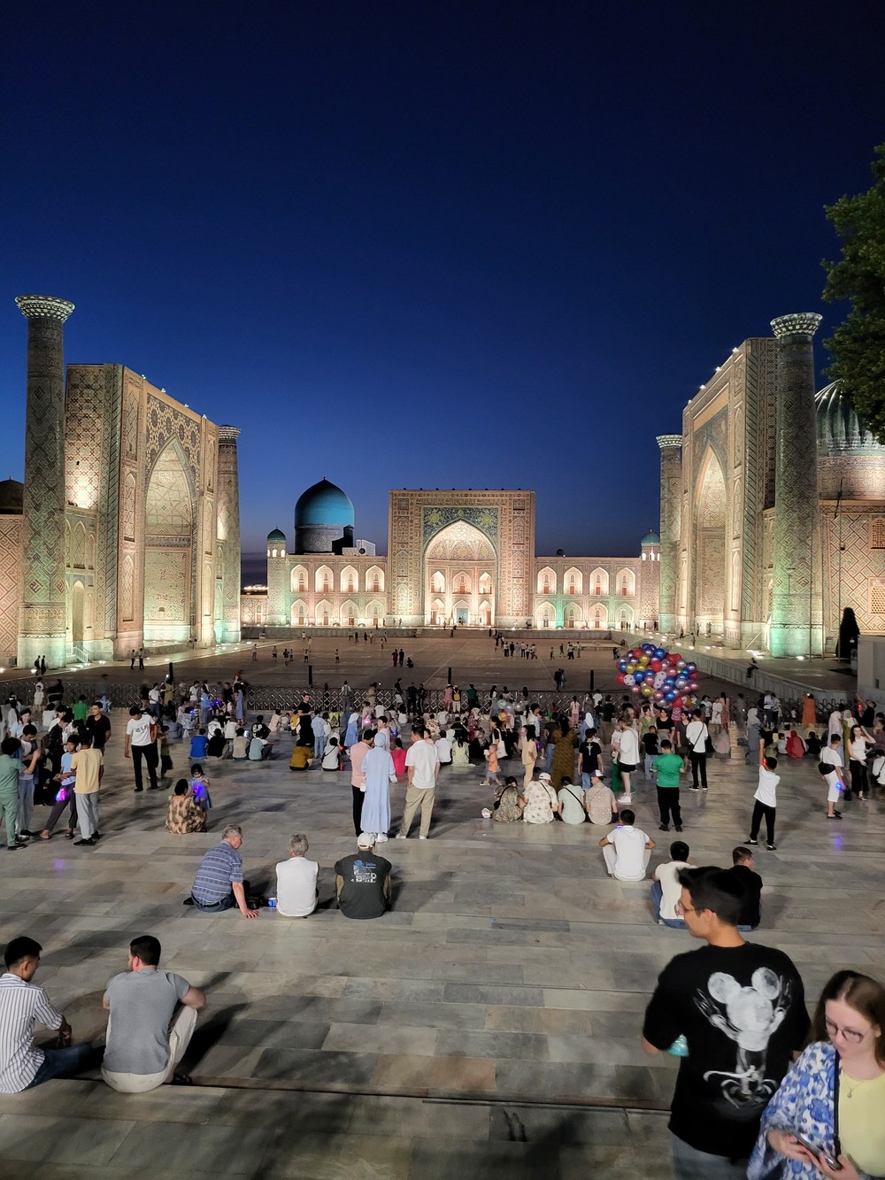 - Регистан — сердце Самарканда и его главная площадь с тремя медресе 15-17 веков: Улугбека, Тилля-Кари, Шердор. Мы осмотрим все и поговорим о том, кто и когда здесь учился.