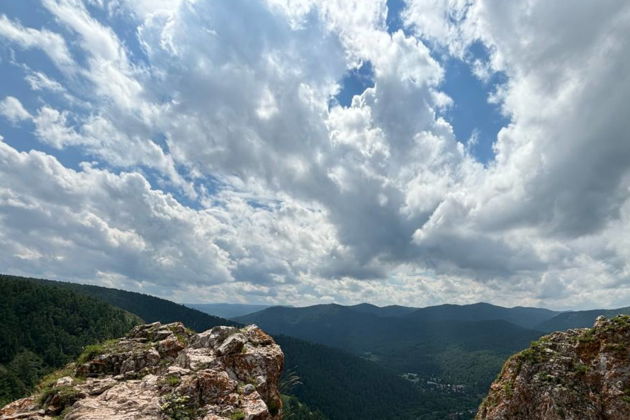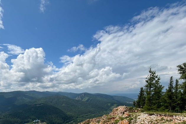 С гребня открывается потрясающий вид на город и диван (начало хребта в виде дивана), который окружает село Базаиха.